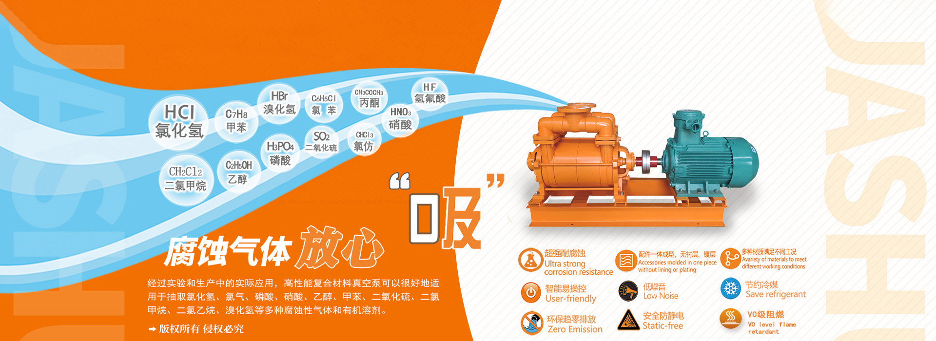 淄博華舜耐腐蝕真空泵有限公司主要生產(chǎn)各種型號和規(guī)格的水噴射泵、耐酸泵、耐酸真空泵等產(chǎn)品,是一家集科研開發(fā)、設(shè)計咨詢、生產(chǎn)、銷售、服務(wù)于一體,利用新型高性能復(fù)合材料,專業(yè)生產(chǎn)耐腐蝕液環(huán)真空泵的國家高新技術(shù)企業(yè), 坐落于“中國泵業(yè)名城”---山東省淄博市博山區(qū),公司通過了ISO9001質(zhì)量體系認證。公司獨立研發(fā)的具有多項自主知識產(chǎn)權(quán)的專利產(chǎn)品-耐腐蝕系列水環(huán)式真空泵,通過了省級科技成果鑒定,處于“國際先進水平”。 產(chǎn)品過流部件采用三大系列高性能復(fù)合材料(HS-V130、HS-V110、HS-V80)一體成型,耐腐蝕范圍廣、無襯層不脫落、節(jié)能效率高、運行可靠、環(huán)保節(jié)水、 體積小、重量輕、使用壽命長等特點。